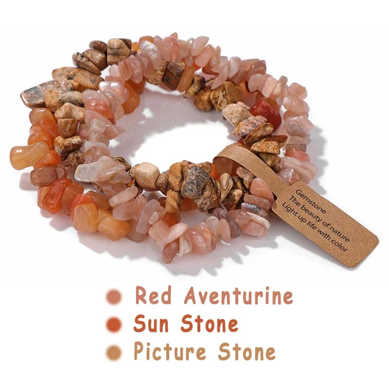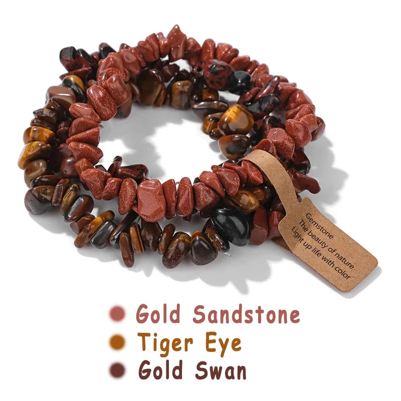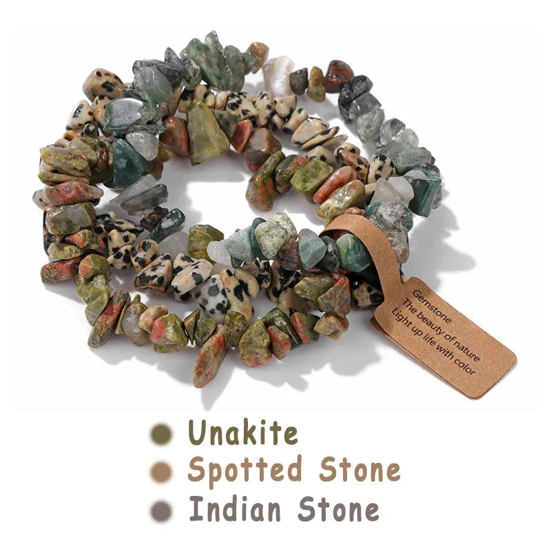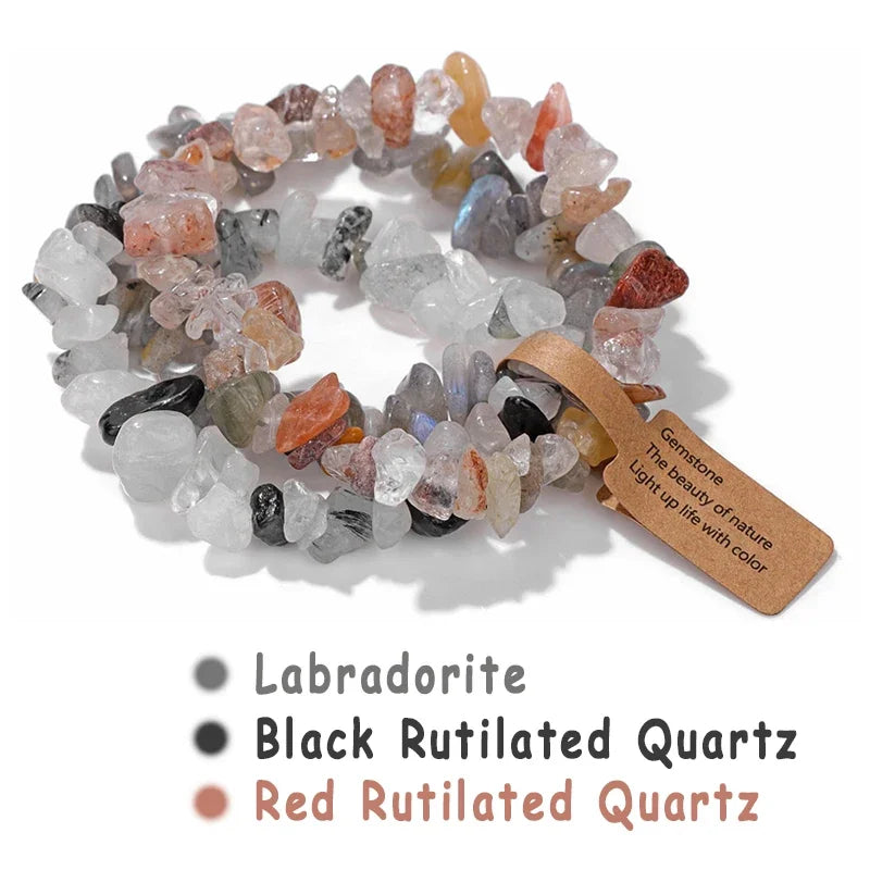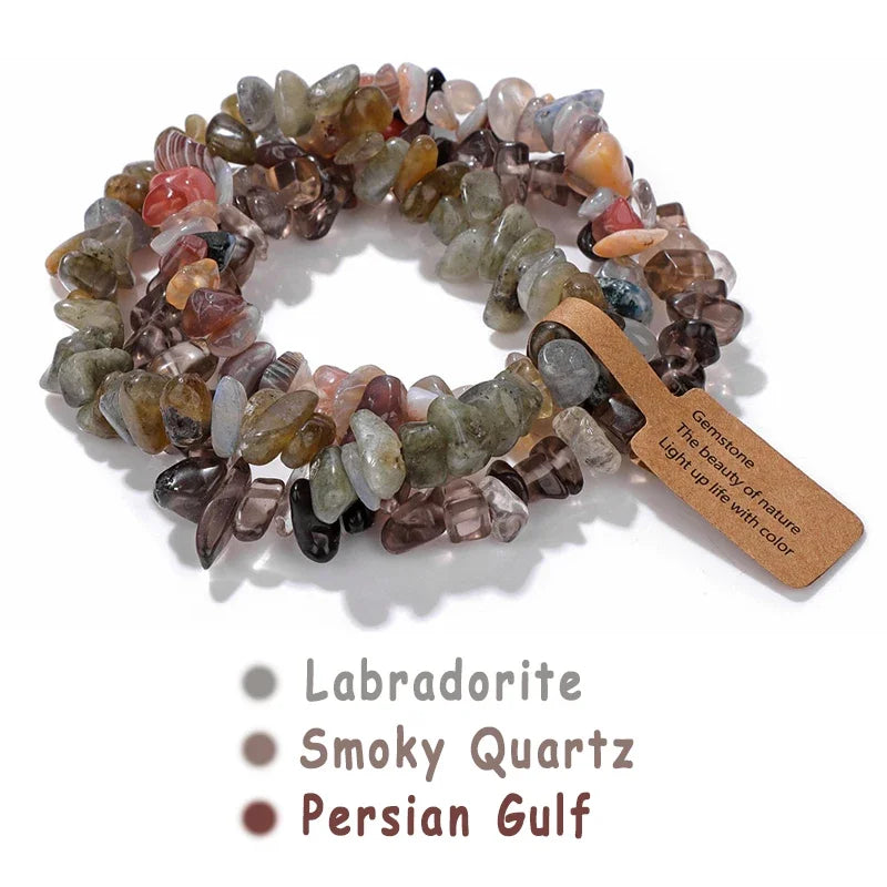 3pcs/set Natural Crystal Gem Stone Bracelet 5-8mm Irregular Amethysts Aquamarine Chips Beads Bracelets Women Men Elastic Jewelry