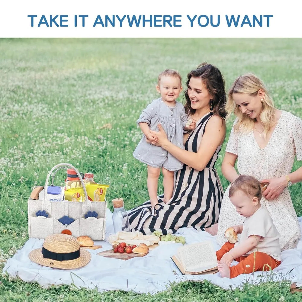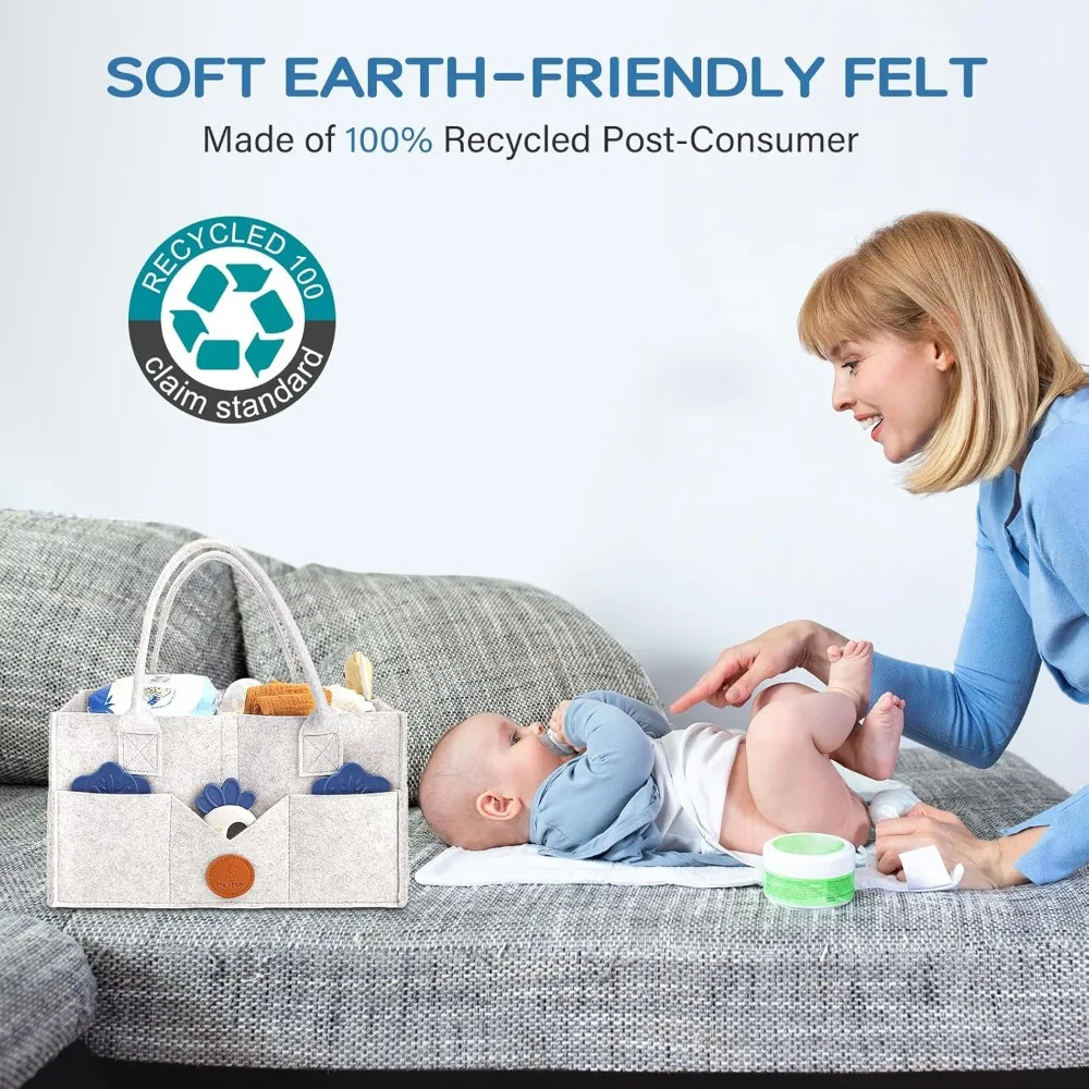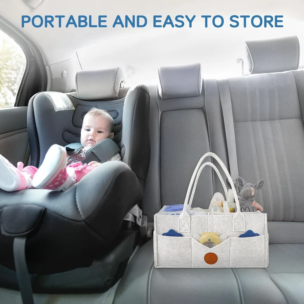 baby diaper caddy, nursery storage bin & car organizer with handle, large felt bag for newborn essentials boy or girl, changing