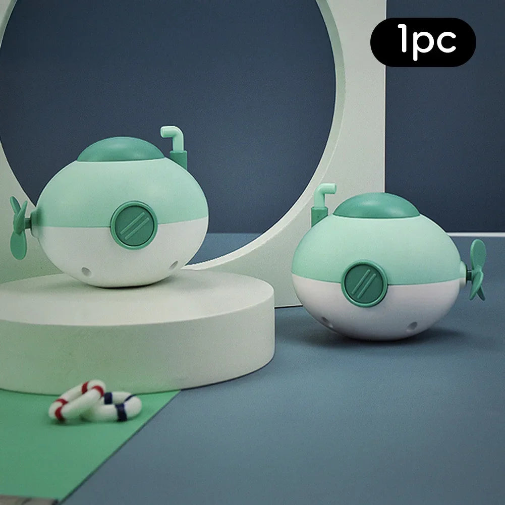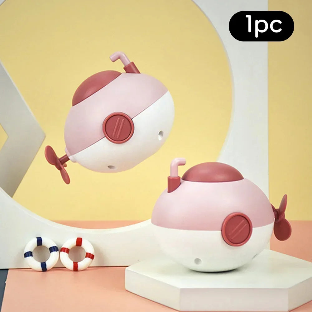 Baby takes a bath and plays in the water, Submarine, winding up animal chain, playing in the bathroom, children's toys