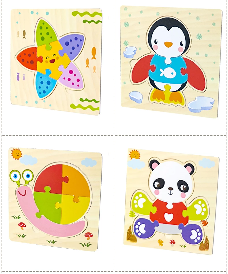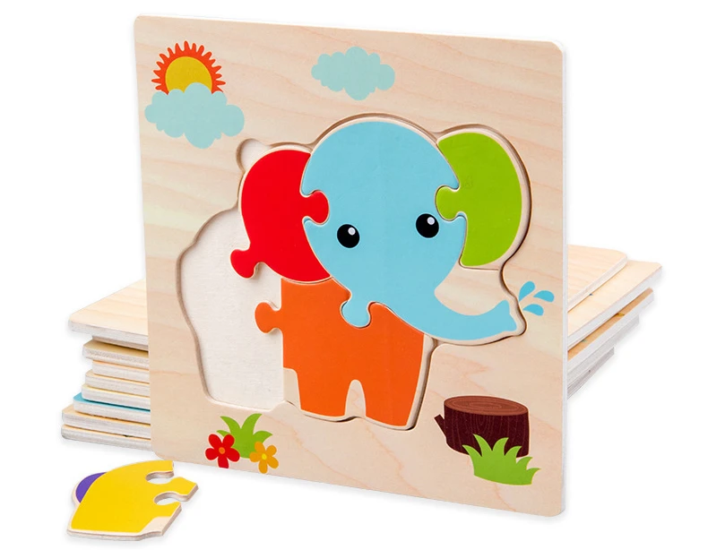 Baby Wooden Toys 3D Wood Puzzle Cartoon Animal Matching Game Intelligence Jigsaw Puzzle Toys For Children Educational