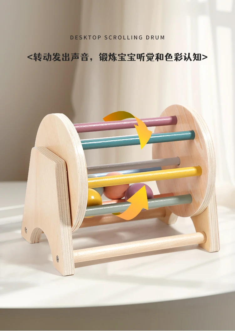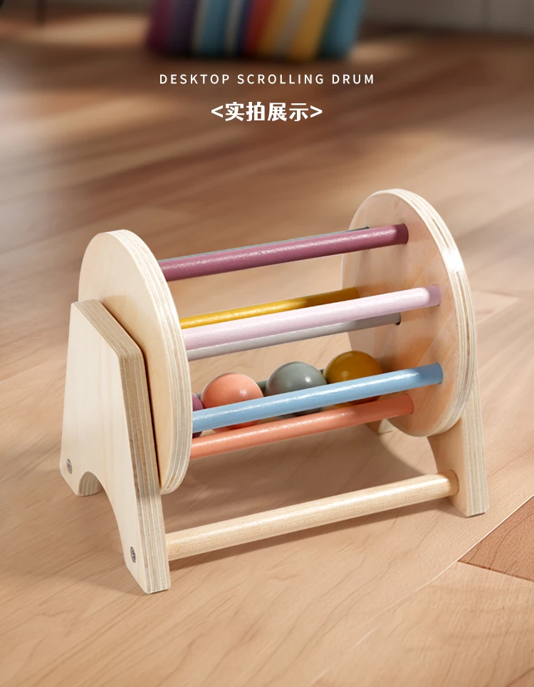 Montessori Infant Wooden Toys Coin Ball Busy Drum Baby Teaching Aid Gifts Color Shape Cognition Match Educational Sensory Toy