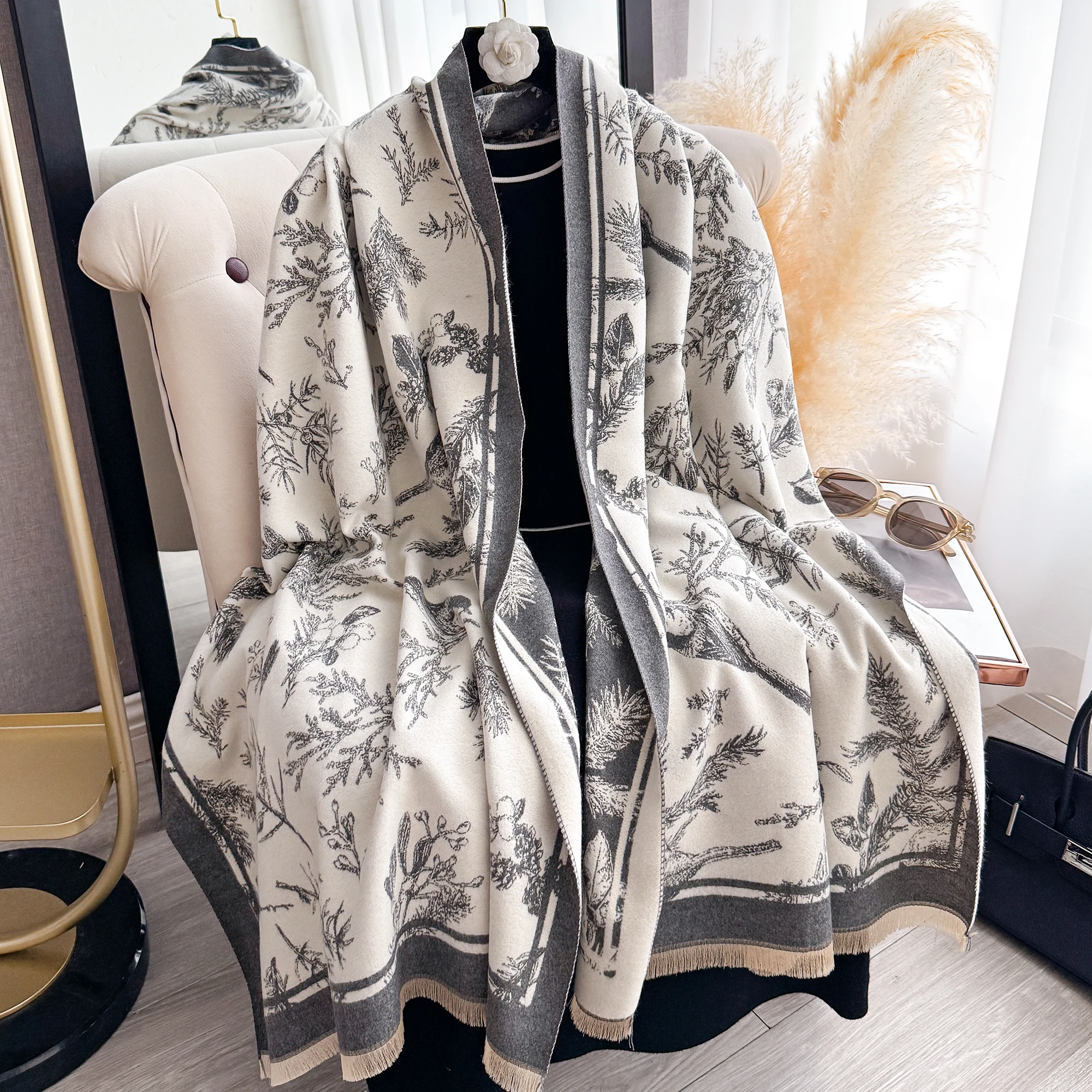 Women's Floral Cashmere Scarves Warm Wraps Large Shawls for Autumn Winter Fashionable Scarves Accessories